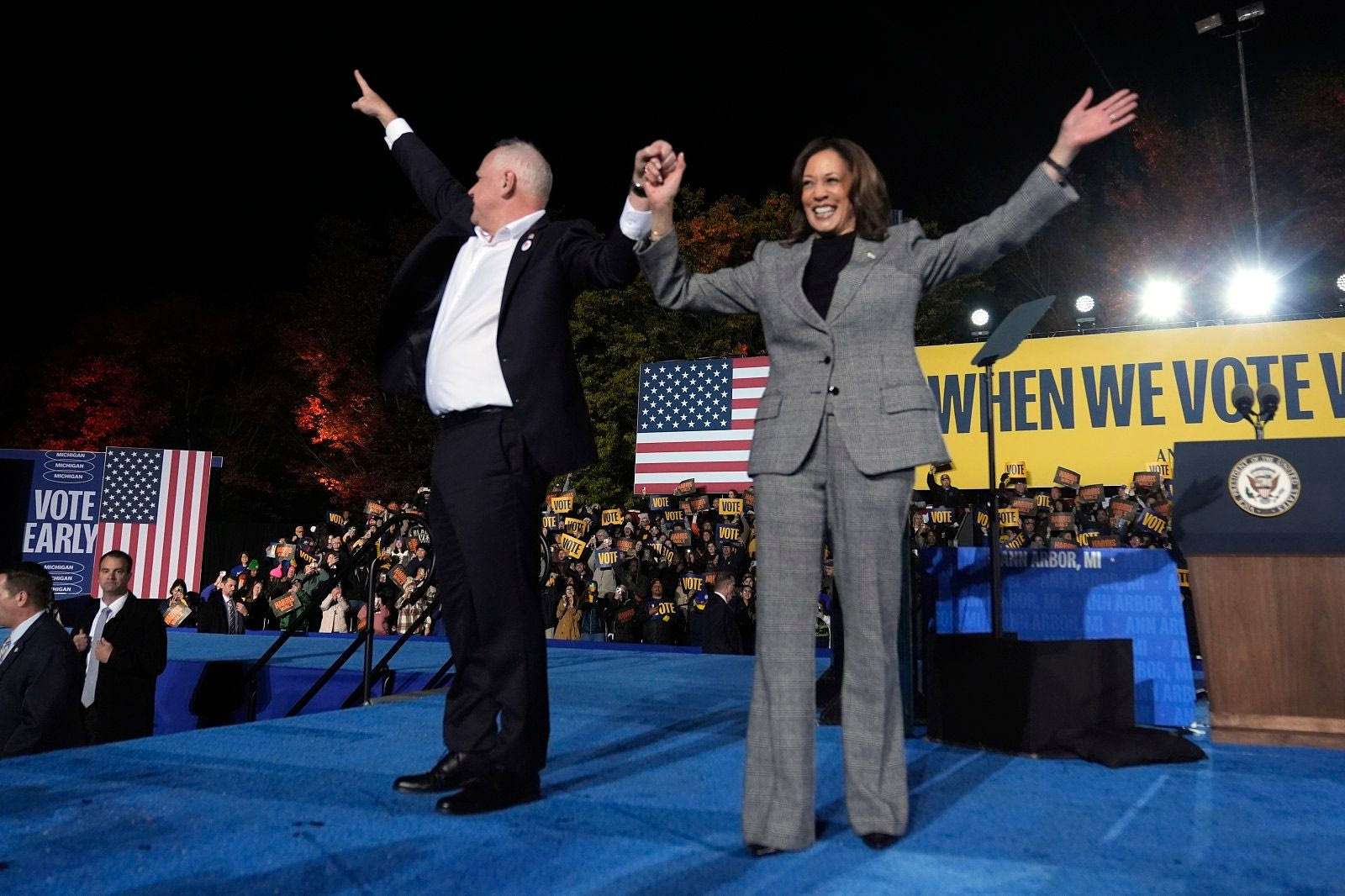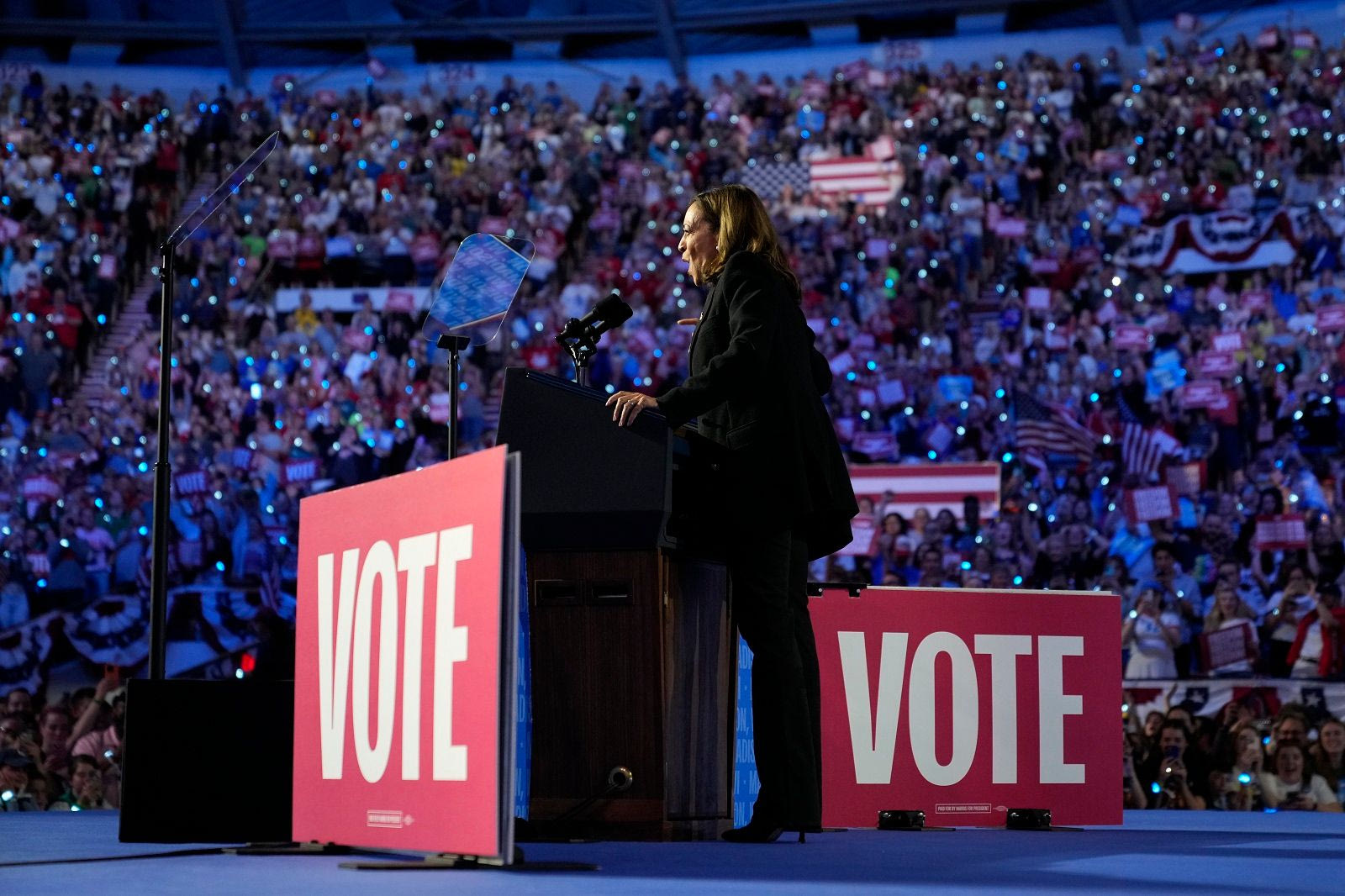 Η τελευταία μεγάλη εκδήλωση της Κάμαλα Χάρις πριν τις εκλογές έγινε στη Φιλαδέλφεια, με την Lady Gaga να τραγουδά το «The Edge of Glory» και να ενισχύει την αίσθηση της δυναμικής στιγμής. Η ατμόσφαιρα θύμιζε τη μεγάλη επιστροφή μιας πολιτικού που ήταν έτοιμη να κάνει ιστορία. Το κοινό ανυπομονούσε, γεμάτο ελπίδες για μία εκλογική νίκη.