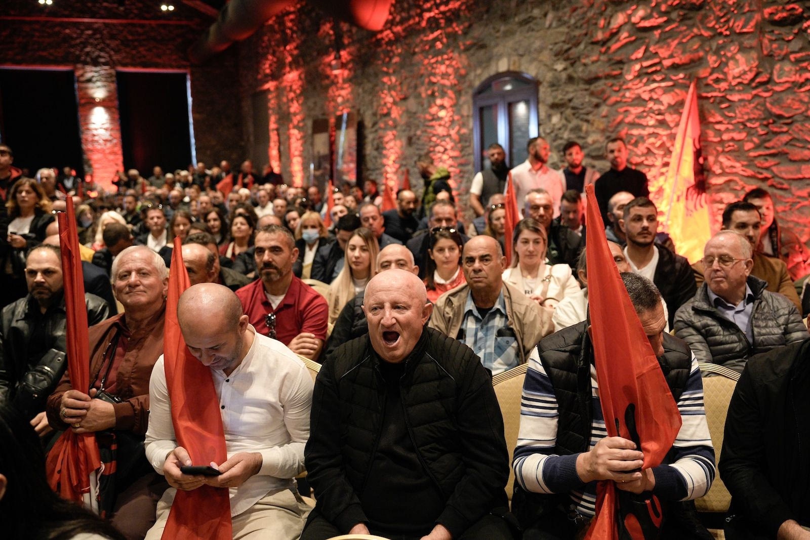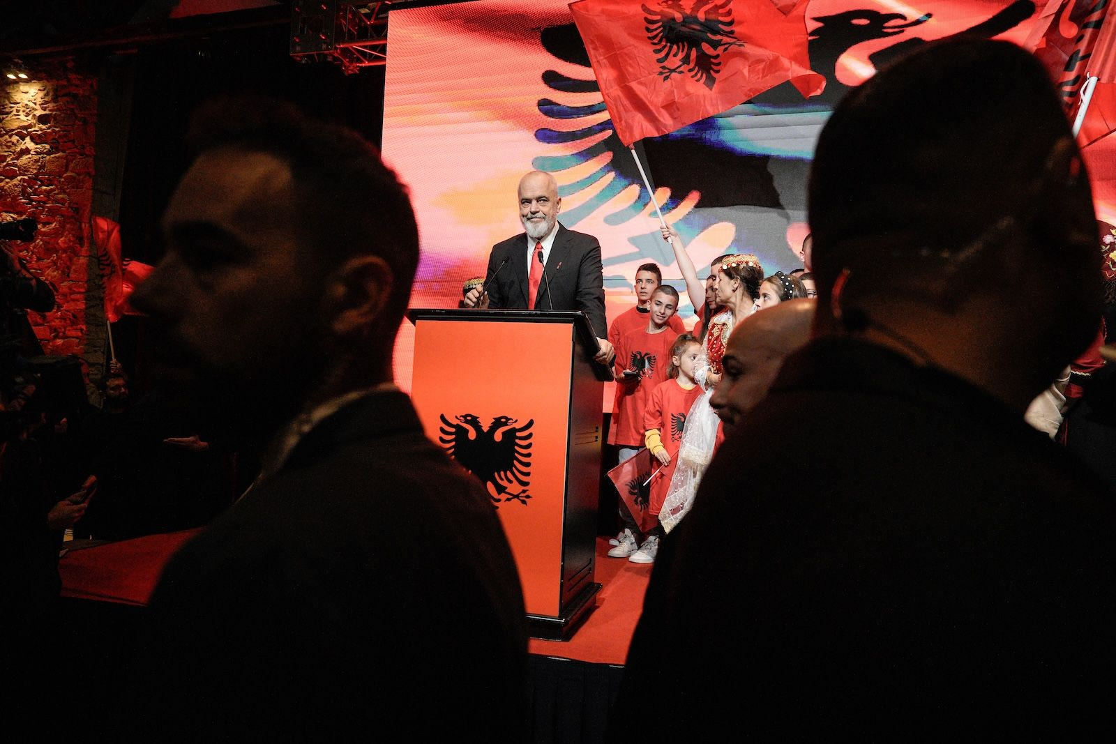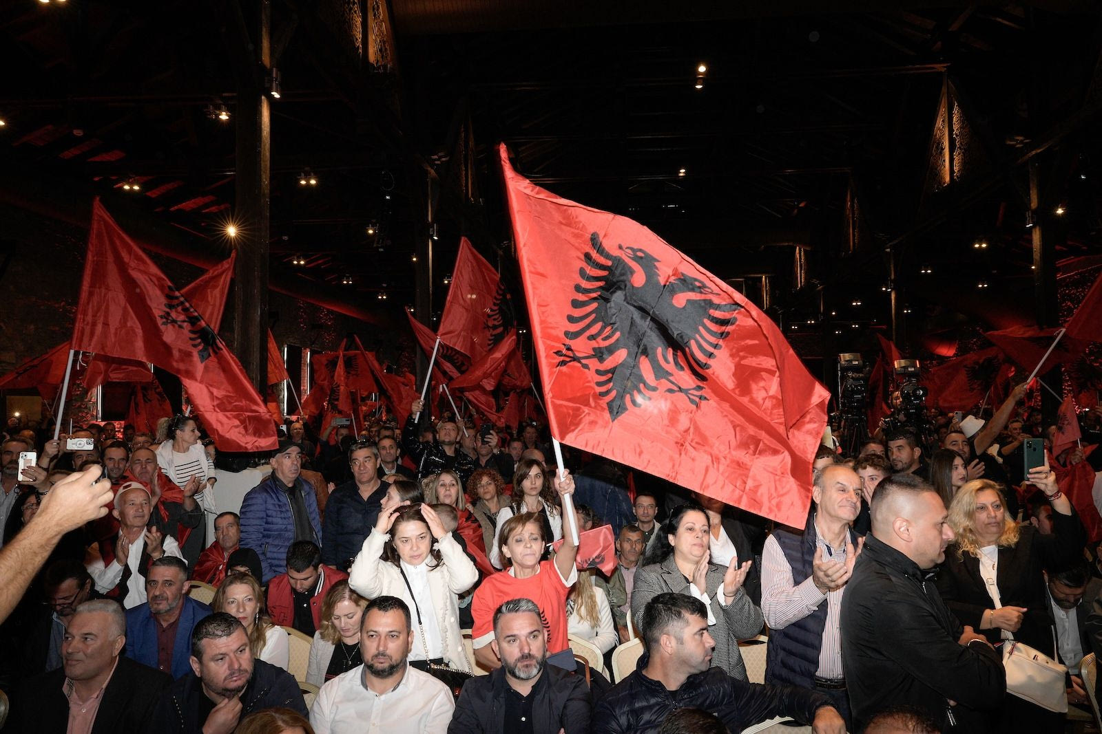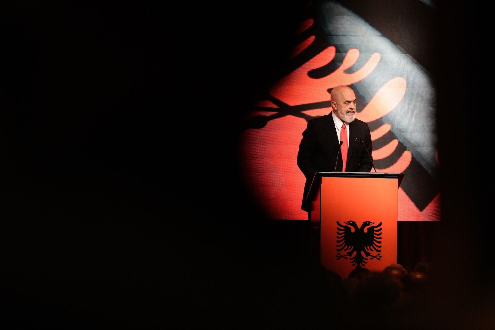 Ο Έντι Ράμα μπήκε στην αίθουσα υπό τους ήχους του αλβανικού εθνικού ύμνου και καταχειροκροτούμενος από τους εκατοντάδες συγκεντρωμένους που φώναζαν «Έντι, Έντι» μέσα σε ένα ιδιαίτερα πανηγυρικό κλίμα.