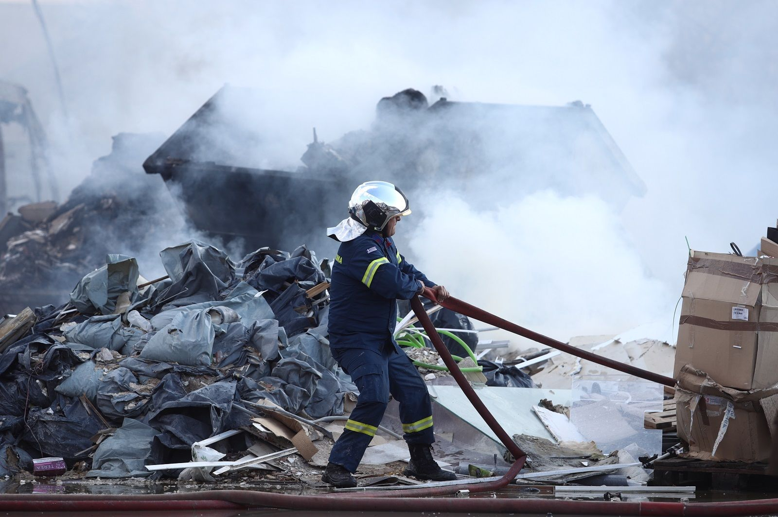Η ατμόσφαιρα στο σημείο είναι αποπνικτική ενώ οι καπνοί είναι ορατοί από αρκετά σημεία της περιοχής.