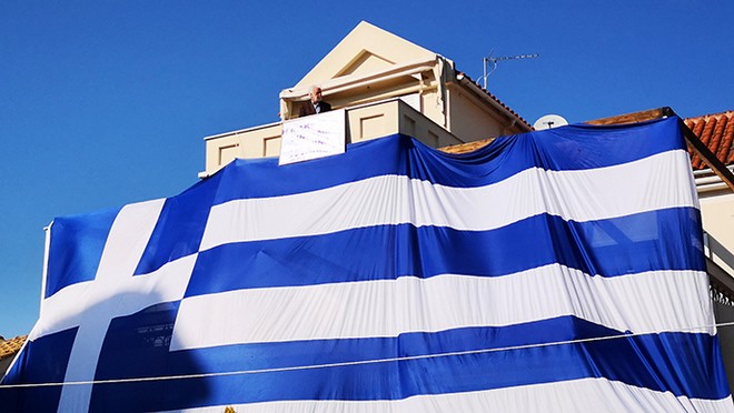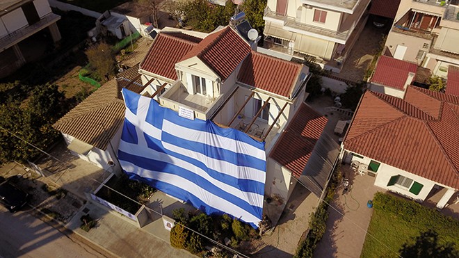 Με μία τεράστια Ελληνική σημαία κάλυψε το σπίτι του ένας κάτοικος της Νέας Κίου του Δήμου Άργους Μυκηνών στην Αργολίδα.