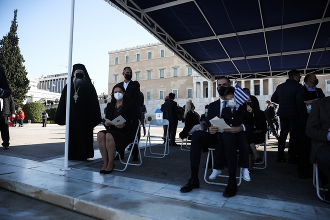 Την παρέλαση παρακολούθησαν εκπρόσωποι της πολιτικής ηγεσίας της χώρας, μεταξύ τους η υπουργός Παιδείας και Θρησκευμάτων, Νίκη Κεραμέως, ο περιφερειάρχης Αττικής, Γιώργος Πατούλης και ο δήμαρχος Αθηναίων, Κώστας Μπακογιάννης.