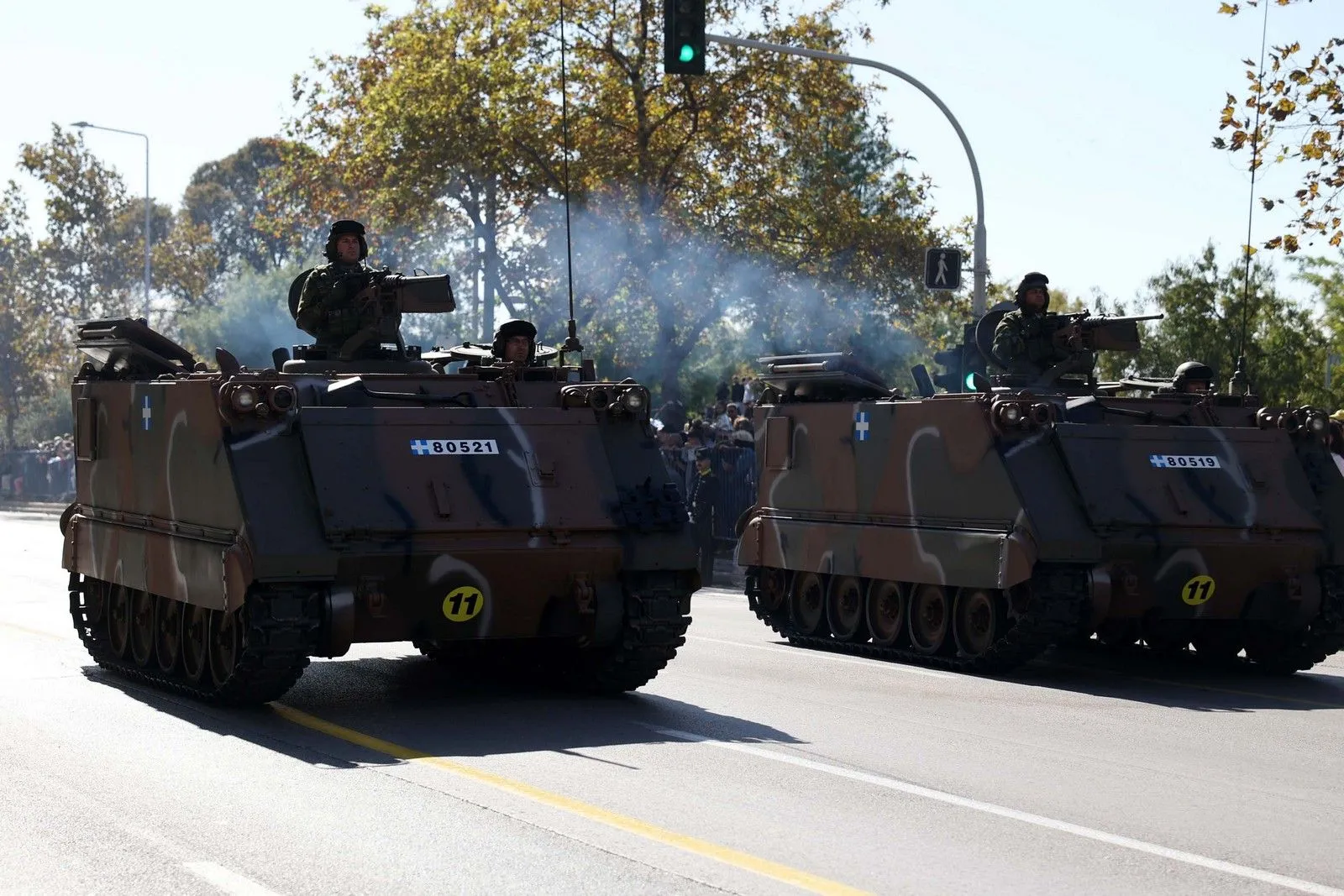 Το όπλο ηλεκτρονικού πολέμου “Υπερίων” που έχει δυνατότητες κατάρριψης εχθρικών drones και προορίζεται για μονάδες επιφανείας του Πολεμικού Ναυτικού αλλά και με ρομποτικό σύστημα εξουδετέρωσης αυτοσχέδιων εκρηκτικών μηχανισμών, εντυπωσίασε, ενώ σε επίπεδο αρμάτων μάχης, παρέλασαν άρματα Leopard του Στρατού Ξηράς εξοπλισμένα με ειδικά “κλουβιά” που τα προστατεύουν απέναντι σε ενδεχόμενα χτυπήματα στον πύργο του άρματος.