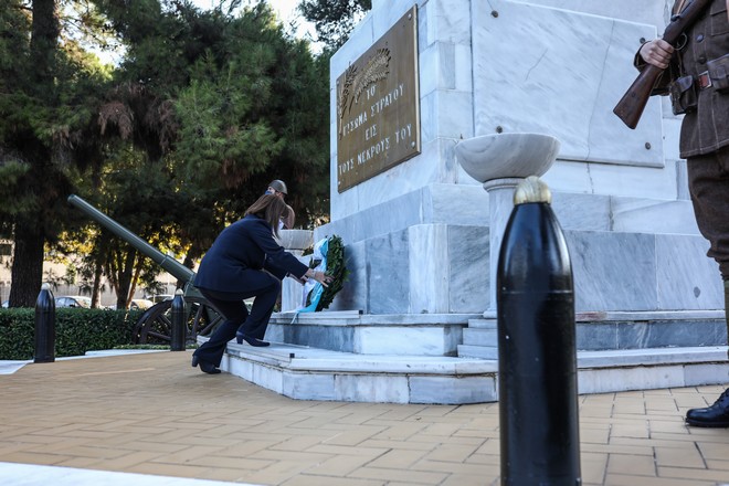 Νωρίτερα, η πρόεδρος της Δημοκρατίας Κατερίνα Σακελλαροπούλου, κατέθεσε στεφάνι στο Ηρώο του Γ ‘ Σώματος Στρατού, ενώ υπήρξε ενός λεπτού σιγή για τους πεσόντες και η ανάκρουση του Εθνικού Ύμνου.