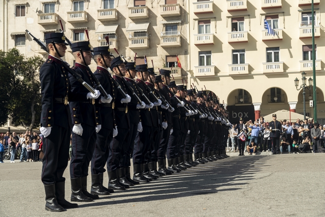 Όπως αναφέρει το GRTimes.gr, παρουσία του υπουργού Εθνικής Άμυνας Νίκου Παναγιωτόπουλου και του αρχηγού ΓΕΕΘΑ Κωνσταντίνου Φλώρου, πραγματοποιήθηκε στην πλατεία Αριστοτέλους η επίδειξη της Διμοιρίας Επιδείξεων της Στρατιωτικής Σχολής Αξιωματικών Σωμάτων (ΣΣΑΣ) και η επίδειξη των Μουσικών των τριών Κλάδων των Ενόπλων Δυνάμεων.