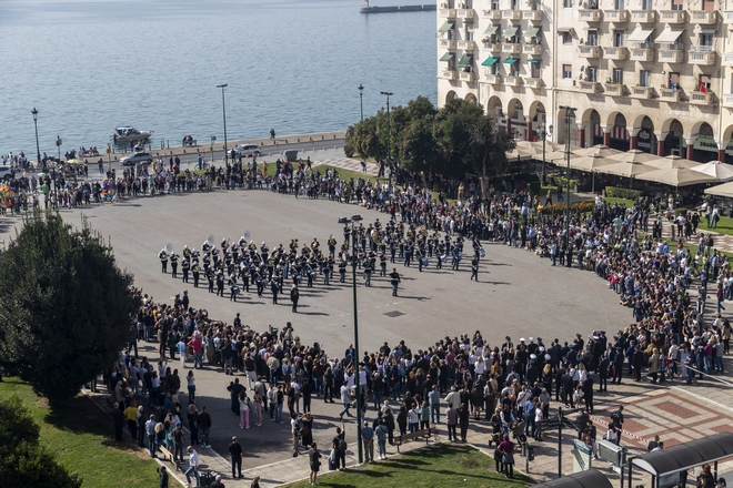 Ενθουσιασμό προκάλεσε στο κοινό, η επίδειξη από επίλεκτη ομάδα της ΣΣΑΣ και από τις στρατιωτικές μπάντες στην πλατεία Αριστοτέλους.