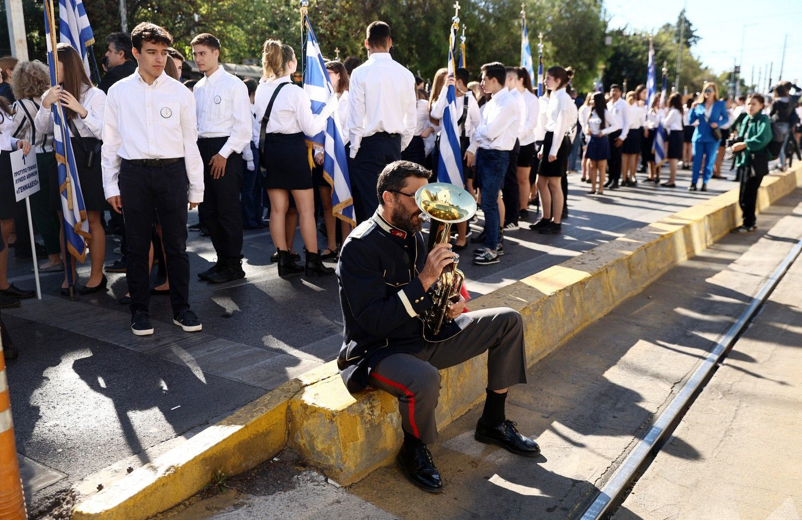 Δείτε στιγμές από τη μεγάλη μαθητική παρέλαση της Αθήνας, συνοδεία της Φιλαρμονικής του Δήμου Αθηναίων και τη συμμετοχή όλων των σχολείων του