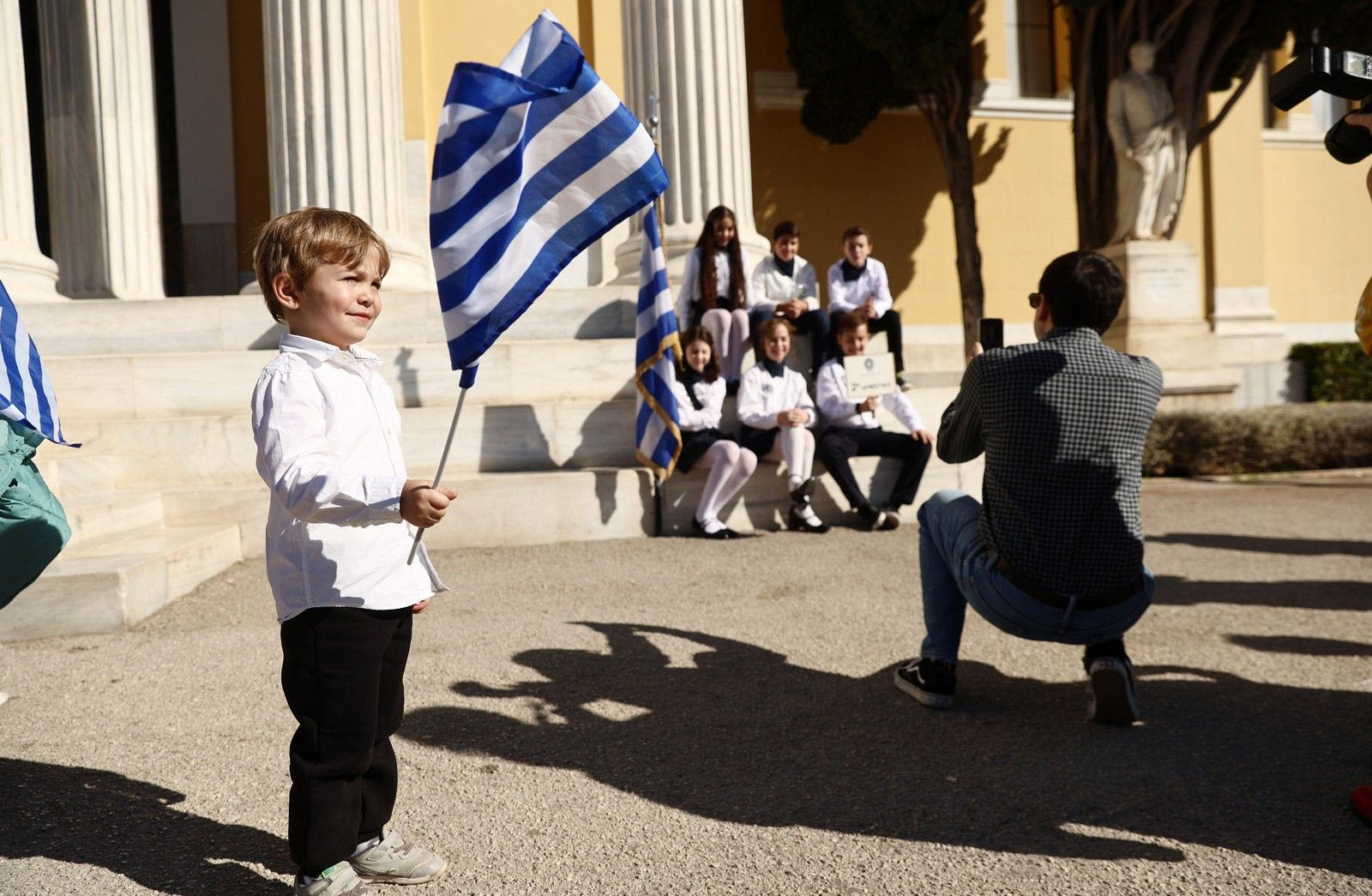 Σε εξέλιξη βρίσκεται η μαθητική παρέλαση για την επέτειο της 28ης Οκτωβρίου στην Αθήνα το πρωί της Δευτέρας, μέσα σε ένα ηλιόλουστο σκηνικό.