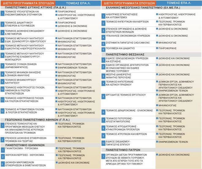 Ακολουθούν αναλυτικά τα διετή προγράμματα σπουδών: