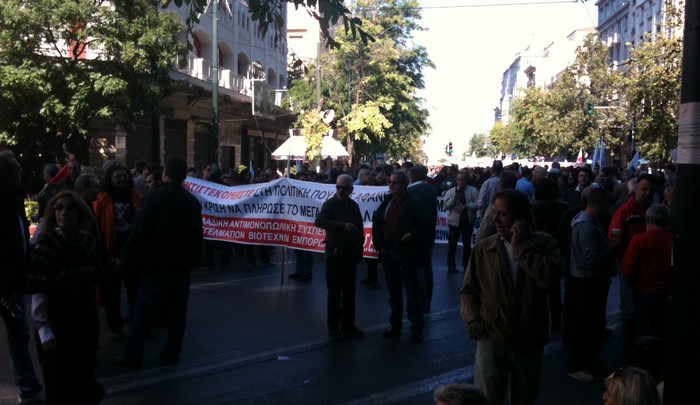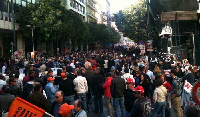 Η πορεία του ΠΑΜΕ, ξεκινά από τη Φιλελλήνων και η ουρά της φτάνει στην Ομόνοια. Ομάδες περιφρούρησης βρίσκονται από νωρίς στο Σύνταγμα, όπου χιλιάδες πολίτες έχουν περικυκλώσει τη Βουλή.