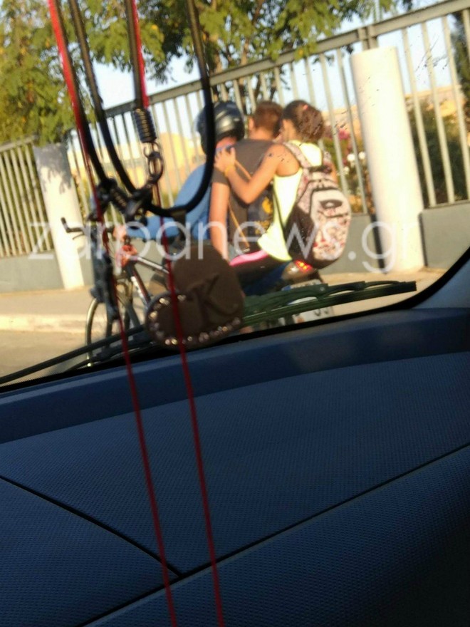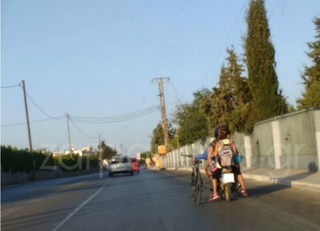Ο φωτογραφικός φακός απαθανάτισε έναν οδηγό δίκυκλου, ο οποίος "φόρτωσε" στη σέλα του άλλους δύο