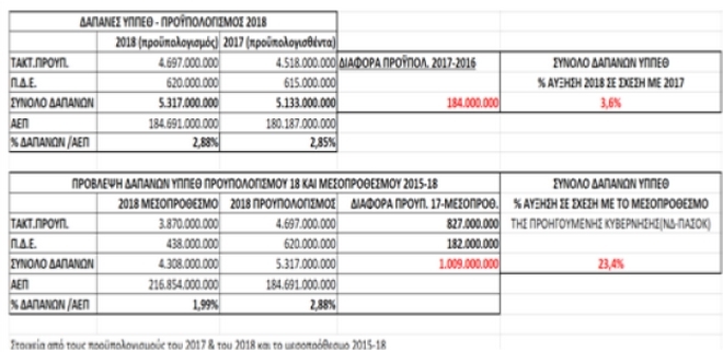 «Με αυτό τον τρόπο ανατρέπεται η αρνητική πρόβλεψη του μεσοπρόθεσμου 2014-18 της προηγούμενης κυβέρνησης (ΝΔ-ΠΑΣΟΚ) για συνεχή μείωση των δημόσιων δαπανών για την παιδεία, οι οποίες θα μειώνονταν με βάση αυτή την πρόβλεψη το 2018 κατά 1.009 δις.  €  και έτσι οι δαπάνες για την εκπαίδευση θα έφταναν μόλις στο 1,99 % επί του ΑΕΠ το 2018, ενώ με τον προϋπολογισμό της σημερινής κυβέρνησης θα είναι στο 2,88 %», αναφέρει το υπουργείο.