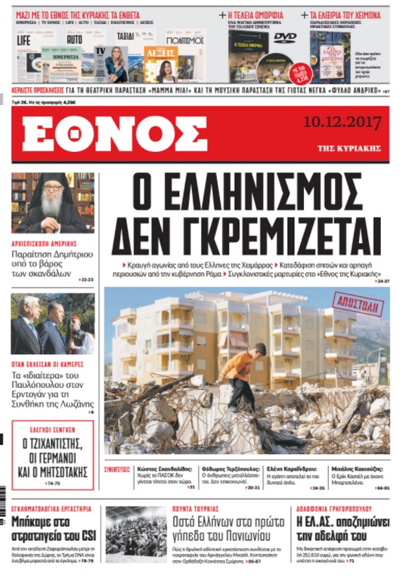 Το «Έθνος της Κυριακής» δημοσίευσε κατά αποκλειστικότητα την είδηση της παραίτησης του Αρχιεπισκόπου Δημητρίου που υποβλήθηκε προσωπικά στον Οικουμενικό Πατριάρχη κ. Βαρθολομαίο, έριξε άπλετο φως σε όλες τις λεπτομέρειες των οικονομικών δεδομένων του προϋπολογισμού για την ανέγερση του Ιερού Ναού του Αγ. Νικολάου στο Σημείο Μηδέν του Μανχάταν, ενώ για πρώτη φορά είδε το φως της δημοσιότητας η τελευταία επιστολή του Οικουμενικού Πατριάρχη Βαρθολομαίου προς τον Αρχιεπίσκοπο Αμερικής κ. Δημήτριο που αφορούσε την πολυσυζητημένη εκλογή του νέου Μητροπολίτη Σικάγου.