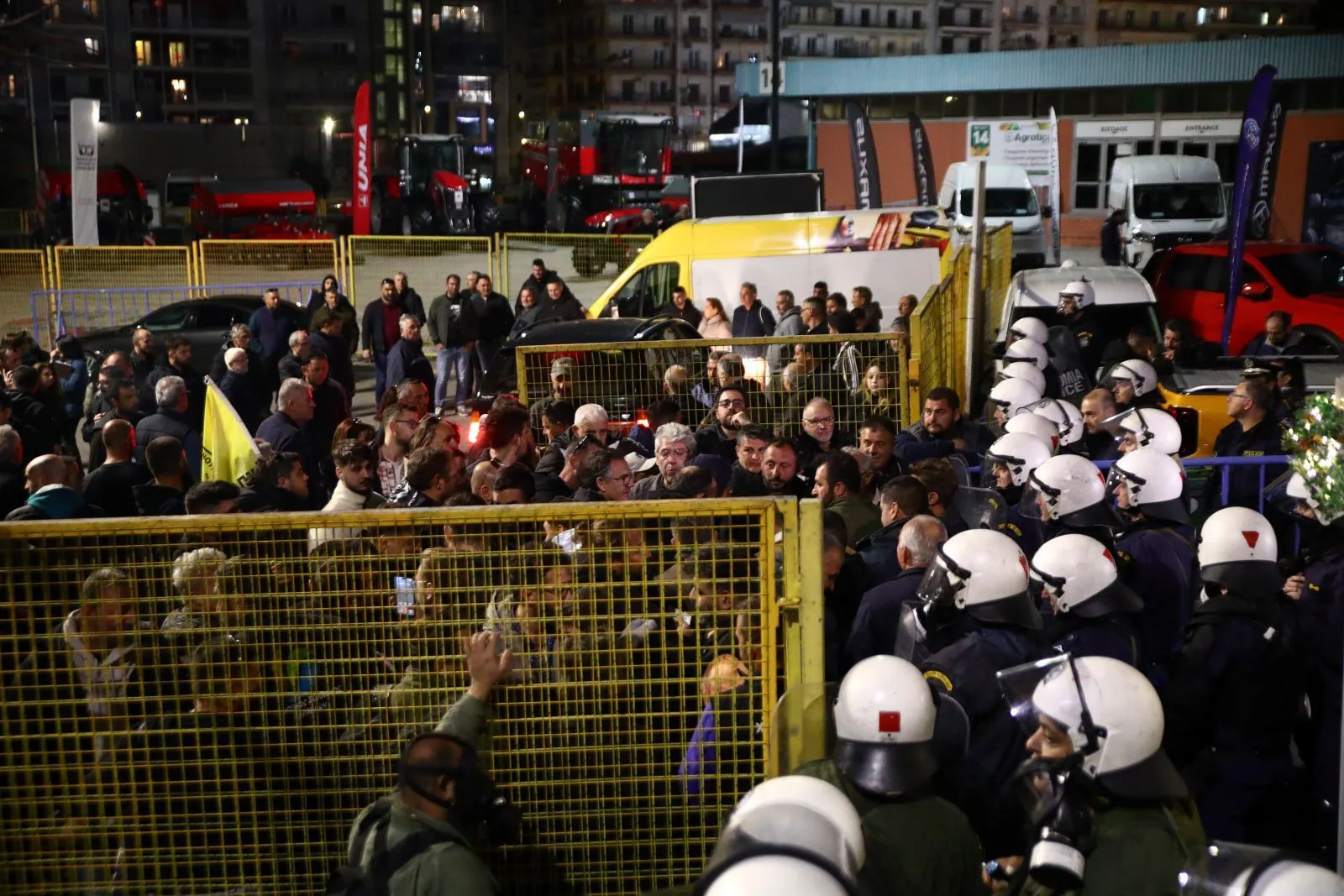 Αγρότες προσπάθησαν να μπουν εντός του εκθεσιακού χώρου της Agrotica για να πραγματοποιήσουν ειρηνική διαμαρτυρία, αλλά απωθήθηκαν από τα ΜΑΤ.