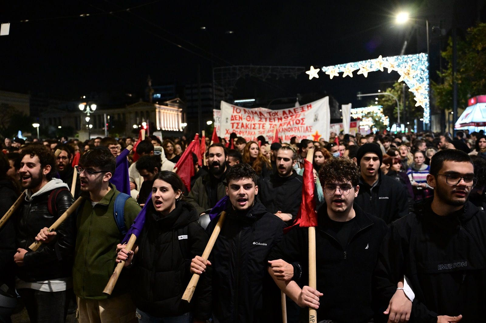 Νωρίτερα, στις 12:00 το μεσημέρι, μαθητές και φοιτητές πραγματοποίησαν πορεία από τα Προπύλαια μέχρι τη Βουλή.