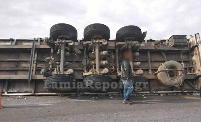 Ανατροπή νταλίκας στο δρόμο Λαμίας – Δομοκού