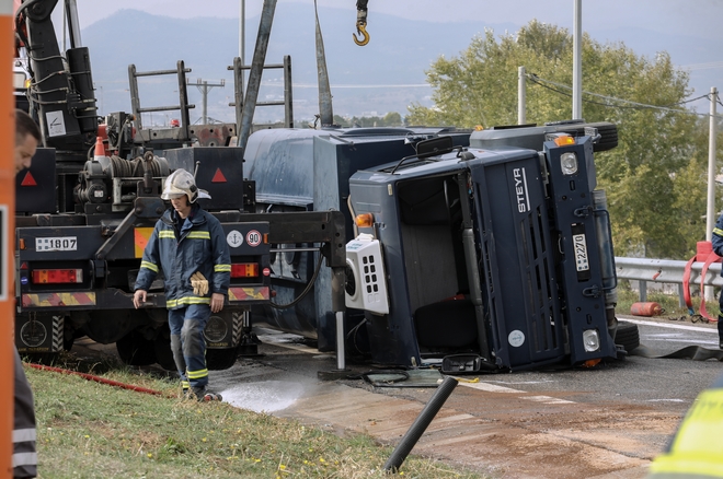 Πιθανόν να χρειαστεί να γίνει πρώτα μετάγγιση του εύφλεκτου φορτίου σε άλλο βυτιοφόρο και στη συνέχεια να γίνουν ενέργειες για την απομάκρυνσή του από το οδόστρωμα.
