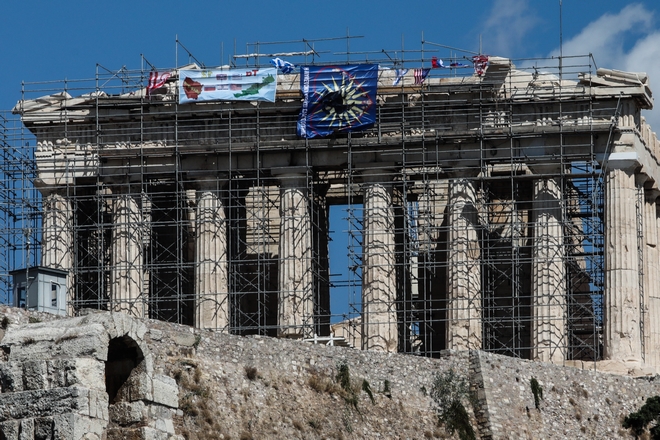 Άνδρας κρέμασε σημαίες στον Παρθενώνα