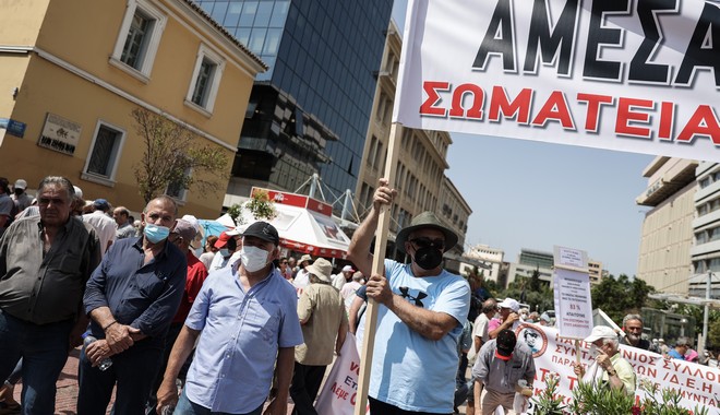 Πανελλαδική συγκέντρωση πραγματοποίησαν το πρωί της Παρασκευής συνταξιούχοι από όλη τη χώρα στο κέντρο της Αθήνας. Η πορεία είχε κατεύθυνση προς το Μέγαρο Μαξίμου, όπου έχει ζητηθεί συνάντηση αντιπροσωπείας συνταξιούχων με τον πρωθυπουργό Κυριάκο Μητσοτάκη.