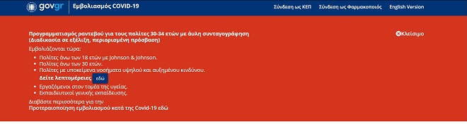 Υπενθυμίζεται ότι η ηλικιακή ομάδα 30-34, μέχρι εκείνη τη μέρα είχε πρόσβαση μόνο στο εμβόλιο της AstraZeneca.