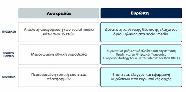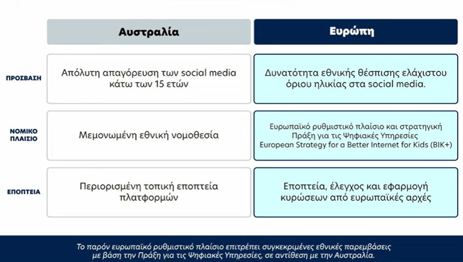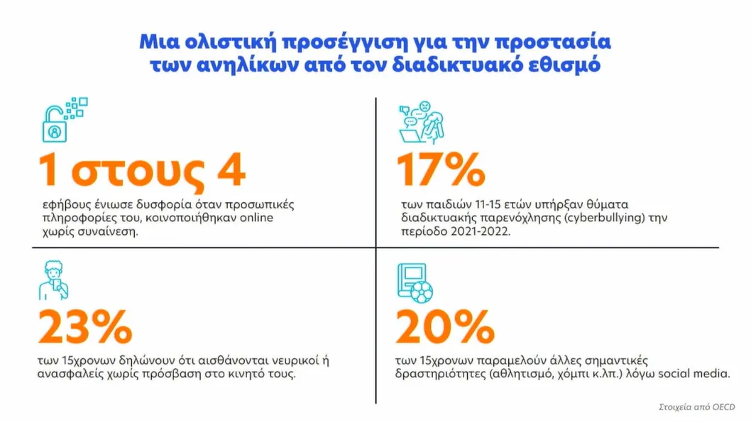 “Το μέτρο δεν περιορίζει την ενημέρωση και την κοινωνικότητα, θέλουμε τα παιδιά να ζουν με χρήση τεχνολογίας αλλά με λελογισμένη χρήση και σε ηλικίες που πρώτα θα έχουν αναπτύξει λειτουργίες αυτοάμυνας και αυτορρύθμισης”.