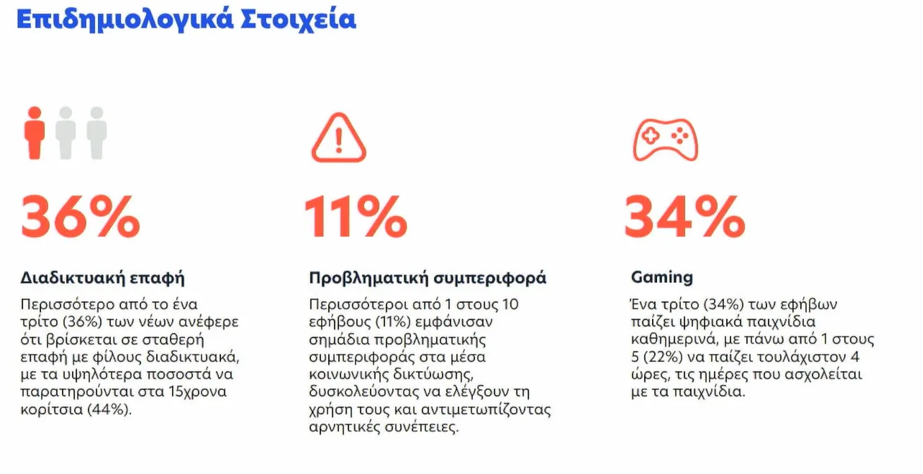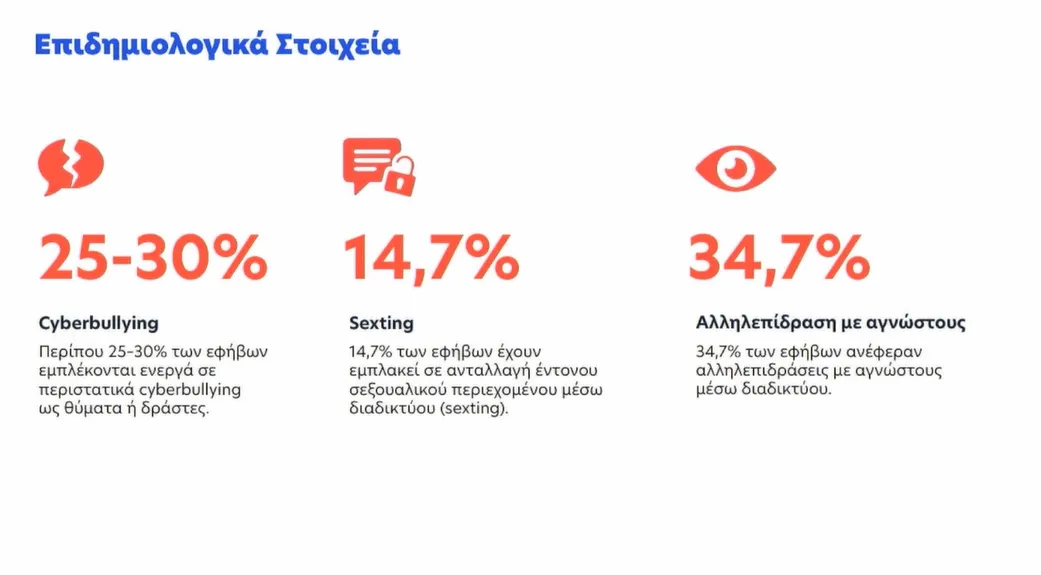 Στη συνέχεια παρουσίασε στατιστικά στοιχεία που αφορούν την έκθεση ανηλίκων στα social media.