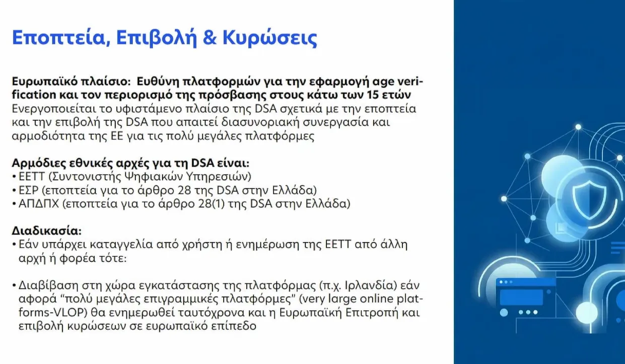 “Για πιθανές παραβιάσεις ενημερώνεται η Ιρλανδία που είναι η βάση των περισσότερων από τις πλατφόρμες στην Ευρώπη και κινητοποιούνται όσα προβλέπονται από το ευρωπαϊκό πλαίσιο”, πρόσθεσε και διευκρίνισε: