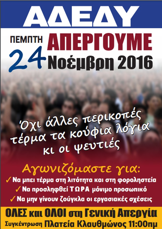 Όπως αναφέρει στην ανακοίνωση-κάλεσμα η ΑΔΕΔΥ, διανύεται μια περίοδο κατά την οποία εργαζόμενοι, άνεργοι και συνταξιούχοι βρίσκονται μπροστά σε μια πρωτόγνωρη κατάσταση όπου, μεταξύ άλλων, στο Δημόσιο Τομέα δρομολογείται η κατάργηση της ενιαίας σχέσης εργασίας και της σταθερής απασχόλησης μέσω της αξιολόγησης των δομών και υπηρεσιών που σταδιακά με τις μετακινήσεις των Δημοσίων Υπαλλήλων σε άλλες υπηρεσίες θα αλλάζουν και οι σχέσεις εργασίας.