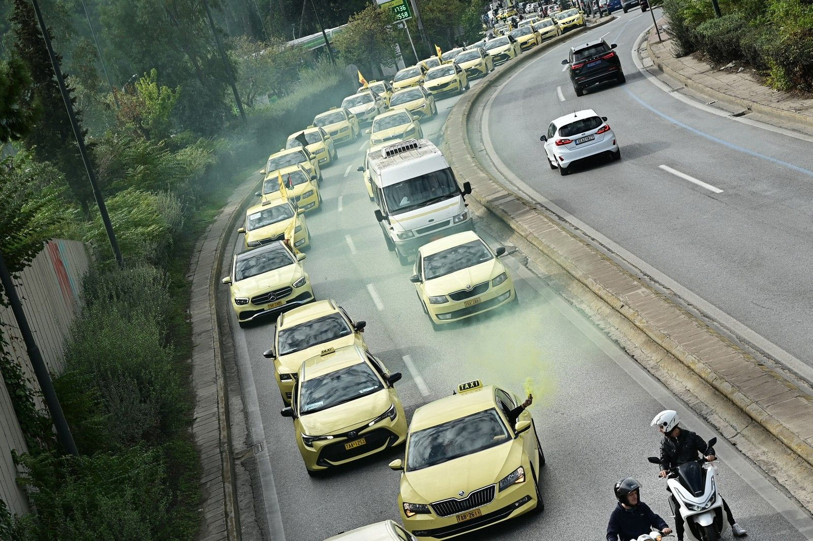 Απεργία ταξί: Αυτοκινητοπομπή με κόρνες και καπνογόνα μέχρι το υπουργείο Μεταφορών