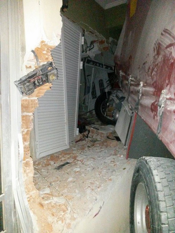 Από τύχη δεν υπήρξαν θύματα, όταν νταλίκα κατέληξε στο σαλόνι υπερυψωμένου σπιτιού, στη Σπάρτη. Υπό έλεγχο το κτίριο για προβλήματα στατικότητας (pics)