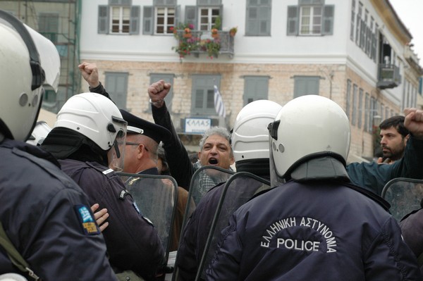 Αποδοκιμασίες και ισχυρές αστυνομικές δυνάμεις στο Ναύπλιο: Πολίτες μούτζωναν έξω από την τελετή ανακήρυξης του Αντ. Σαμαρά ως επίτιμου δημότη