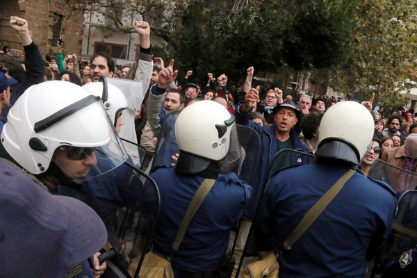 Συγκέντρωση διαμαρτυρίας πολιτών του Ναυπλίου την ώρα της τελετής ανακήρυξης και παράδοσης του χρυσού κλειδιού της πόλης στον πρωθυπουργό Αντώνη Σαμαρά την Κυριακή 30 Νοεμβρίου 2014. (EUROKINISSI/ΒΑΣΙΛΗΣ ΠΑΠΑΔΟΠΟΥΛΟΣ)
