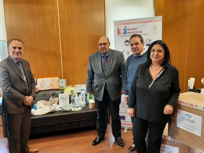 Ο Γενικός Διευθυντής της «Αποστολής» Κωνσταντίνος Δήμτσας με συνεργάτες του και τους Δημάρχους Μυτιλήνης κ. Στρατή Κύτελη και Δυτικής Λέσβου κ. Ταξιάρχη Βέρρο συναντήθηκαν με τους νέους γονείς, συνομίλησαν μαζί τους και έλαβαν γνώση των καθημερινών αναγκών διαβίωσης τους.