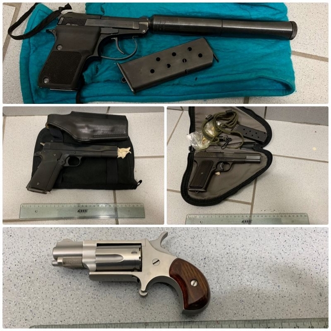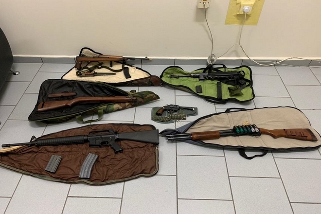 Ειδικότερα, στο πλαίσιο διερεύνησης στοιχείων σχετικά με υπόθεση όπλων και έπειτα από ελέγχους και έρευνες, παρουσία δικαστικού λειτουργού στις κατοικίες και αποθήκες των κατηγορουμένων, βρέθηκαν στην κατοχή τους 3 πολεμικά τυφέκια (υποπολυβόλα), 4 πιστόλια, 2 περίστροφα, 4 κυνηγετικά όπλα (καραμπίνες), 2 αεροβόλα πιστόλια, 4 μηχανισμοί – διακόπτες πυροδότησης εκρηκτικών υλών και 32 γεμιστήρες πολεμικών τυφεκίων.