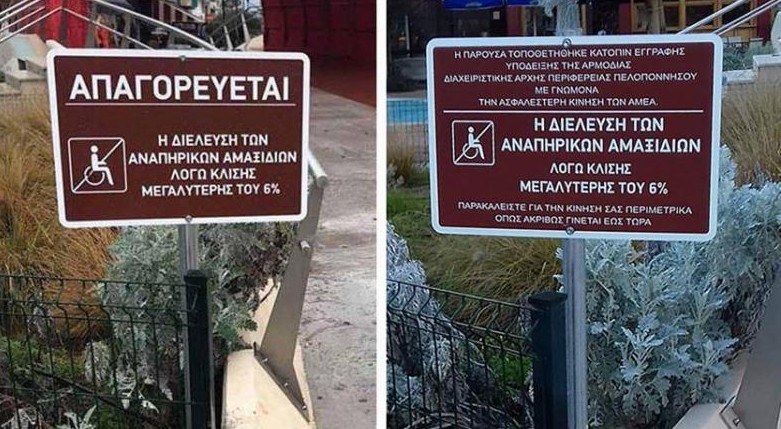 Κατόπιν των ενεργειών της Ε.Σ.Α.μεΑ, η Ειδική Υπηρεσία Διαχείρισης (ΕΥΔ) του Επιχειρησιακού Προγράμματος Περιφέρειας Πελοποννήσου προέβη στην αποστολή προς τον Δήμο Άργους – Μυκηνών/Διεύθυνση Τεχνικών Έργων και Μελετών της υπ. αριθ. πρωτ. 3610/20.12.2018 επιστολής, την οποία προς ενημέρωσή σας, καθώς και προς ενημέρωση των πολιτών και κάθε ενδιαφερόμενου, επισυνάπτουμε στο παρόν. Με την επιστολή της αυτή η ΕΥΔ ζητά: