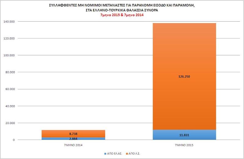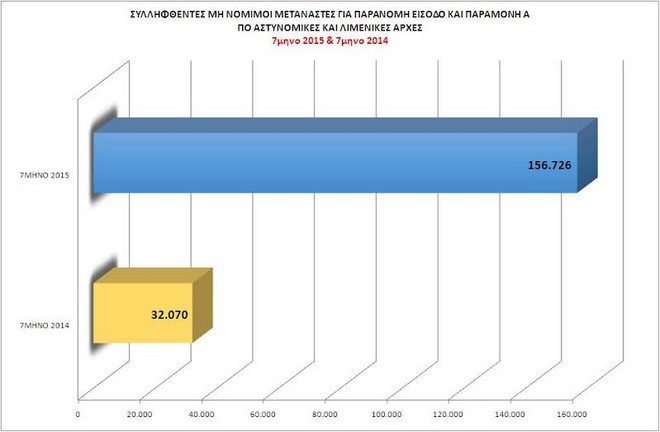 Μόνο που αν δεν γίνει όντως ευρωπαϊκό το πρόβλημα θα παραμείνει… ελληνικό! Σε ό,τι αφορά λοιπόν τα στατιστικά στοιχεία, που αποκαλύπτουν την παντελή δυσχέρεια στην προστασία των θαλασσίων συνόρων μας και την τουρκική προκλητικότητα, μόνο το 7μηνο του 2015 έχουν εισέλθει στη χώρα μας 156.726 παράνομοι μετανάστες, όταν το αντίστοιχο περσινό χρονικό διάστημα είχαν εισέλθει μόλις 32.070 και όλον τον χρόνο 77.163.