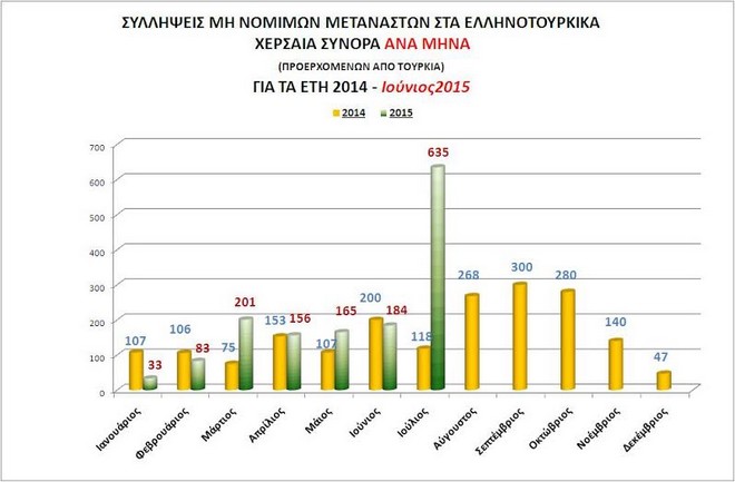 Μόλις το πρώτο 7μηνο έχει έως και τετραπλασιαστεί σε σχέση με άλλες χρονιές η εισροή μεταναστών από τα νησιά του Αιγαίου. Ο φράχτης έχει εμποδίσει σχεδόν σε απόλυτο βαθμό την εισροή μεταναστών από τον Έβρο, ωστόσο έχει μεταφέρει το πρόβλημα στα νησιά που έχουν εντελώς ανύπαρκτη υποδομή για να αντιμετωπίσουν το πρόβλημα (Πίνακες)