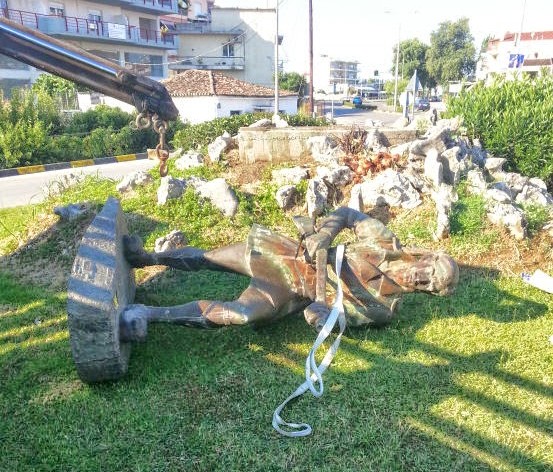 “Το ξημέρωμα της Κυριακής 22 Ιουνίου, περί τις 6:00 π.μ., ενημερωθήκαμε από την Αστυνομία, ότι άγνωστοι, γκρέμισαν τον άγαλμα του «Εύζωνα», που είναι τοποθετημένο στον ομώνυμο κόμβο της εισόδου της πόλης μας.