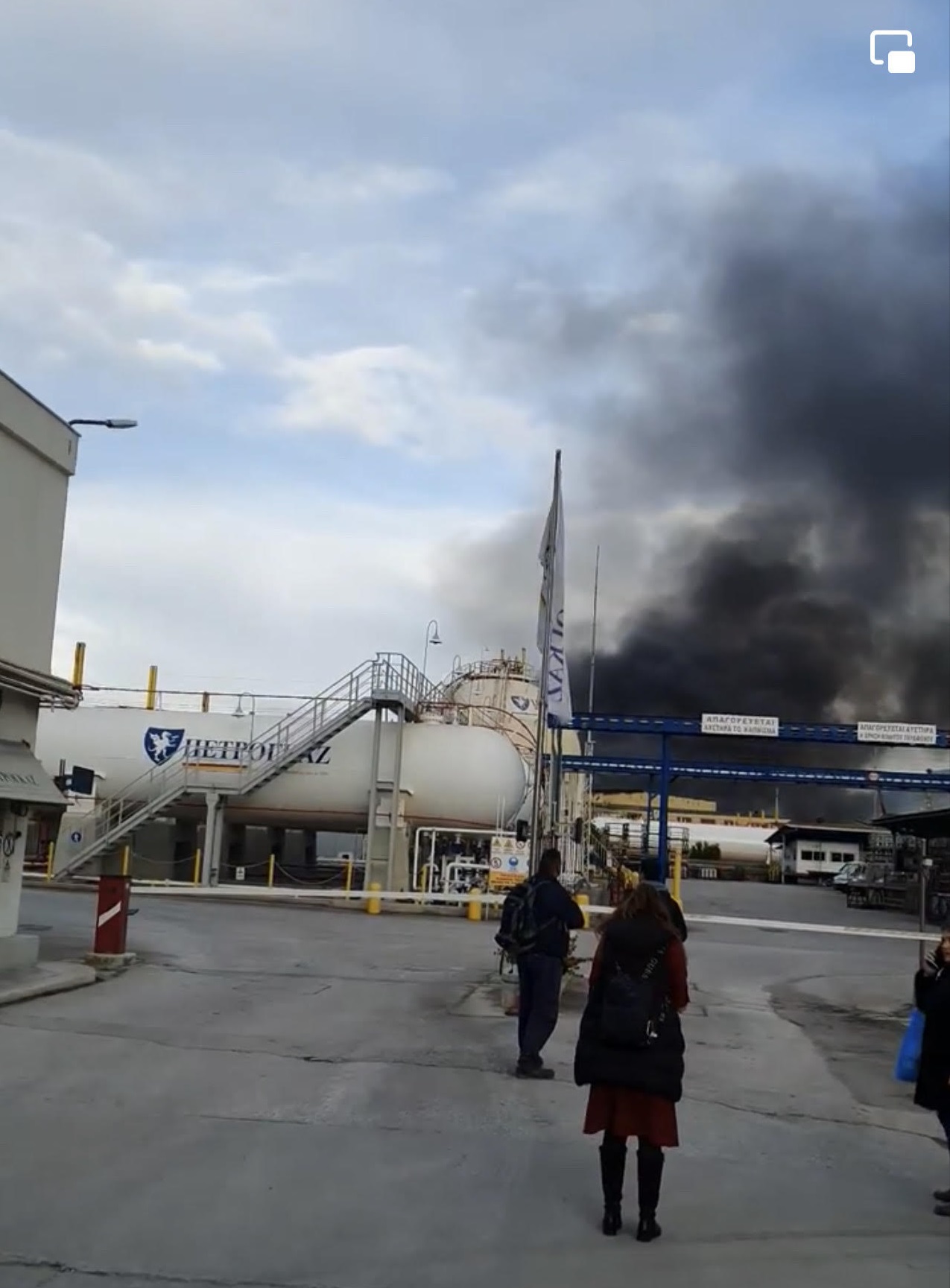 Εικόνες από το σημείο δείχνουν πυκνούς καπνούς να βγαίνουν από τις εγκαταστάσεις ενώ, σύμφωνα με πληροφορίες, έχουν καλύψει την Εθνική Οδό.