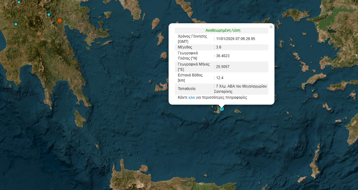 Σεισμική δόνηση 3,6 Ρίχτερ σημειώθηκε, το πρωί της Κυριακής, στην θαλάσσια περιοχή της Σαντορίνης.
