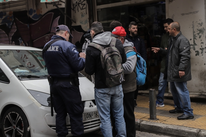 Ισχυρές αστυνομικές δυνάμεις βρίσκονται στους δρόμους γύρω από την Ομόνοια, μεταξύ τους και η οδός Μενάνδρου που έγινε χθες η αιματηρή συμπλοκή και ελέγχουν μαζικά αλλοδαπούς-129 προσαγωγές μέχρι στιγμής