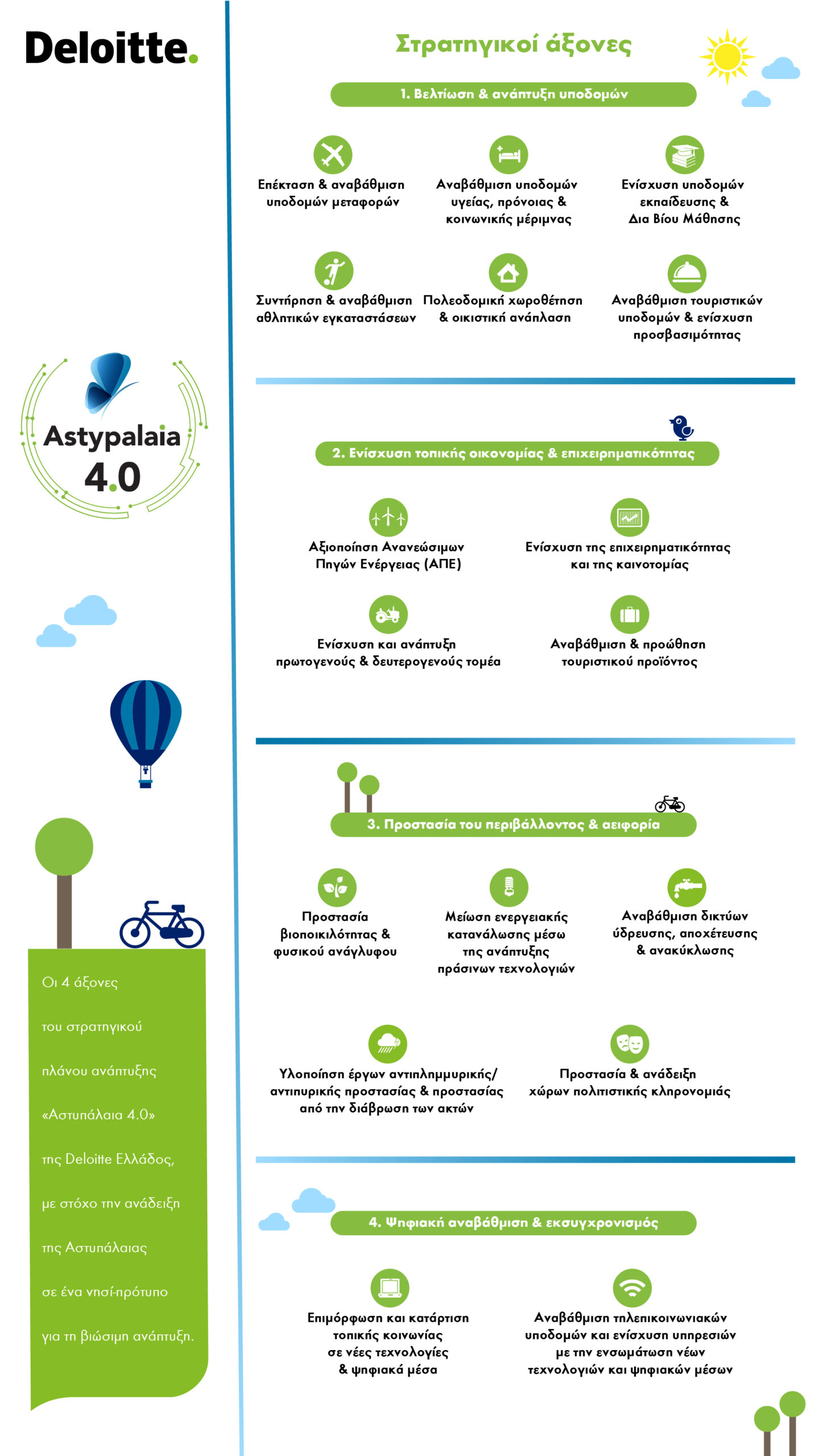 Το στρατηγικό πλάνο ανάπτυξης «Αστυπάλαια 4.0», εκπονήθηκε αφιλοκερδώς από την Deolitte Ελλάδος ώστε να δημιουργήσει το πλαίσιο και τις προοπτικές, για ένα ακριτικό νησί όπως η Αστυπάλαια, να επιτύχει ένα βιώσιμο μέλλον.