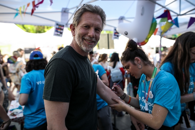 Από το πρωί του Σαββάτου η πλατεία Συντάγματος γέμισει από περίπτερα όπου γίνονται δράσεις όπως body painting, rainbow games, ενώ από τα μεγάφωνα ακουγόταν μουσική.