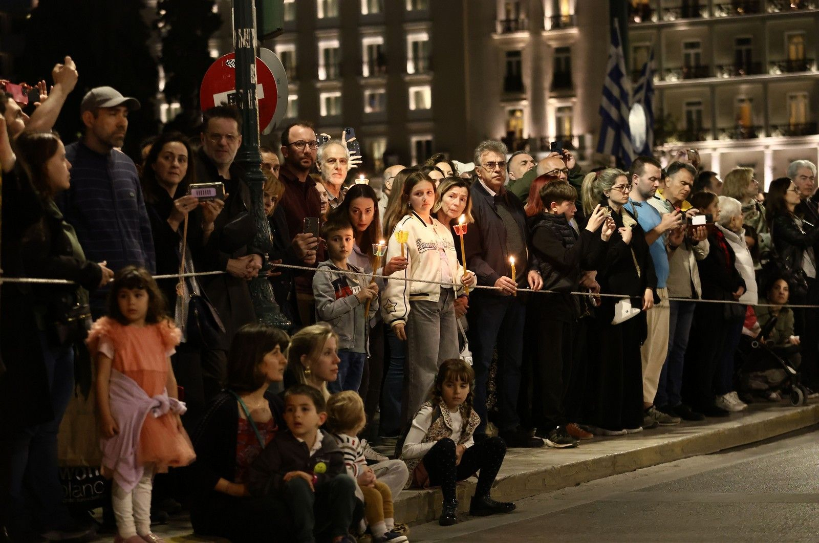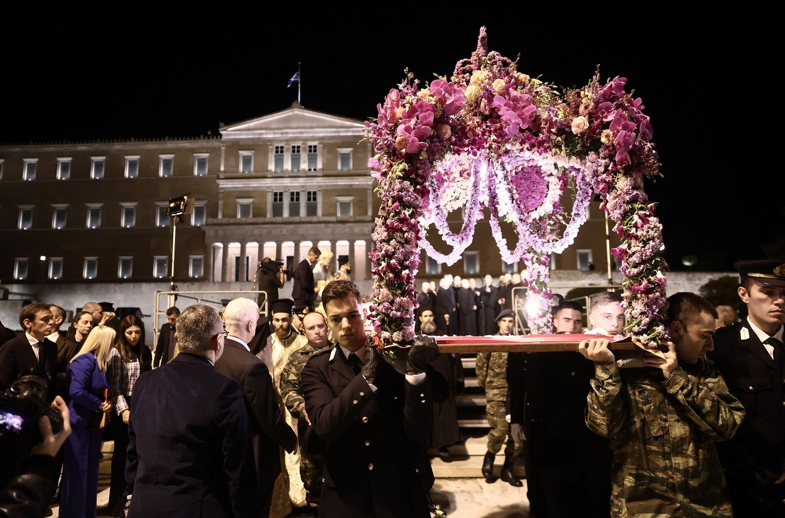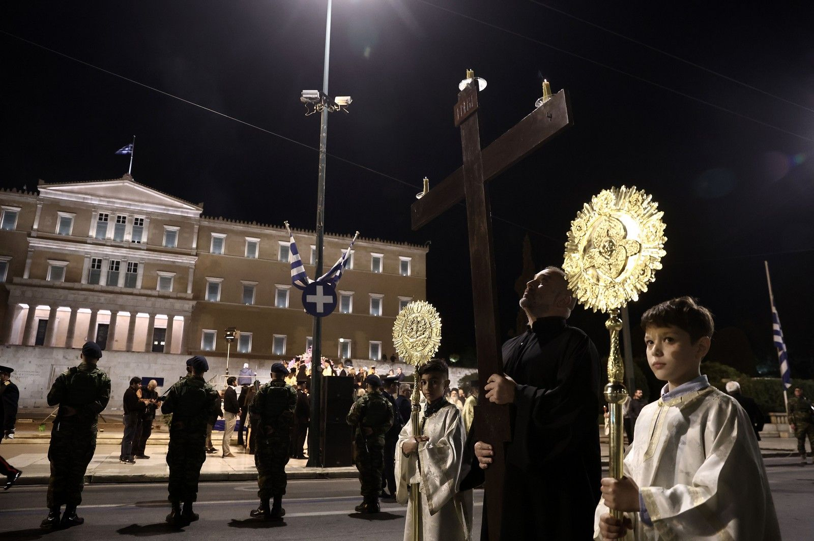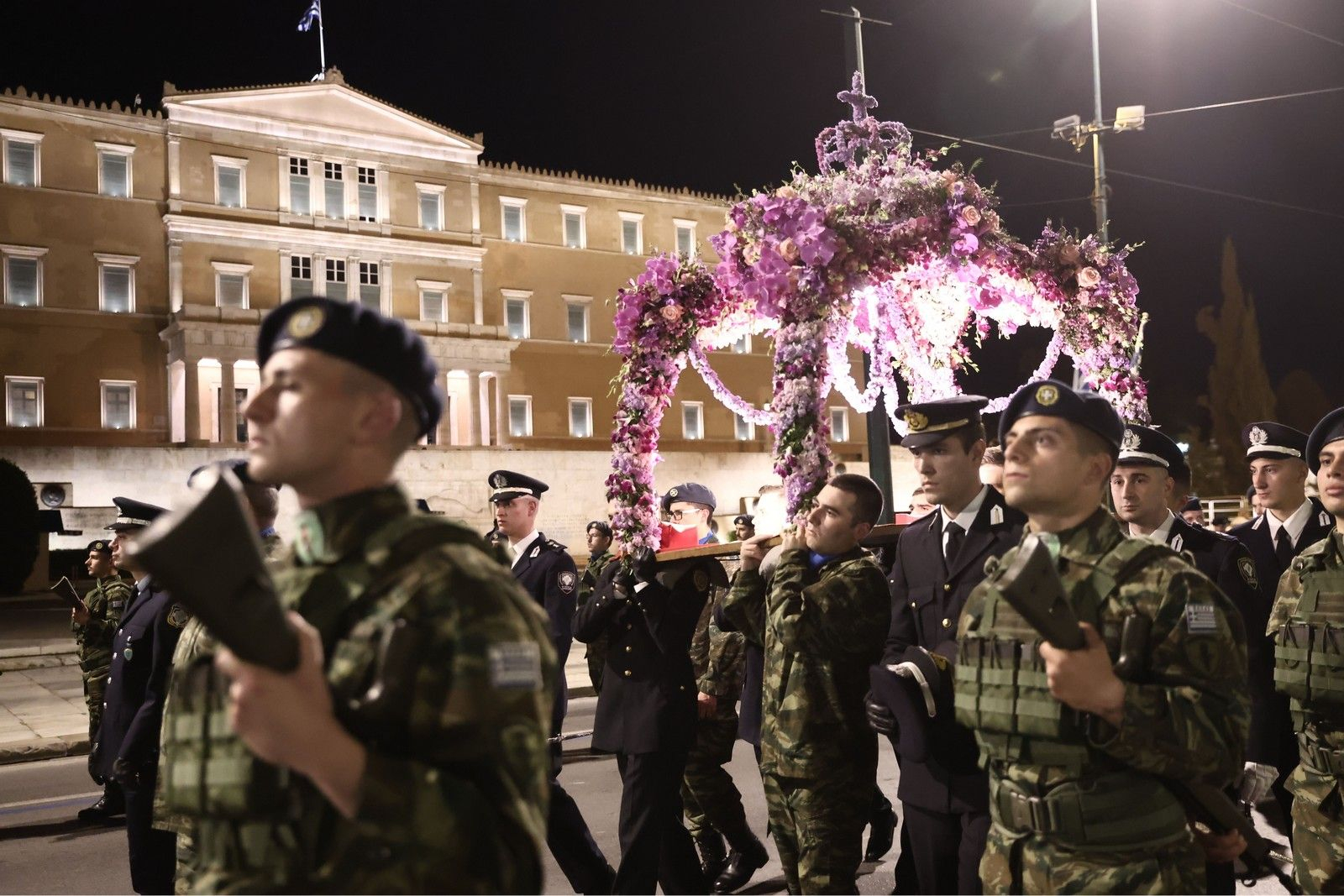 Πλήθος πιστών έδωσε το παρών στην περιφορά του Επιταφίου στους δρόμους της Αθήνας. Το μήνυμα Ιερώνυμου από την Πλατεία Συντάγματος.