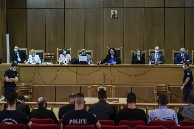Είκοσι λεπτά νωρίτερα, οι τρεις δικαστές του Τριμελούς Εφετείου Κακουργημάτων, Μαρία Λεπενιώτη, Ανδρ. Ντόκο και Γεσθημανή Τσουλφόγλου, είχαν καθίσει στις θέσεις τους, έτοιμοι να κάνουν γνωστή την ομόφωνη απόφασή τους, ότι δηλαδή η εγκληματική οργάνωση με το όνομα “Χρυσή Αυγή” είναι υπαρκτή. Απέναντί τους, στο εδώλιο μόλις 11 από τους 68 κατηγορούμενους περίμεναν την κρίση τους. Απούσα ολόκληρη η πρώην κοινοβουλευτική ομάδα, αλλά και βασικοί κατηγορούμενοι.