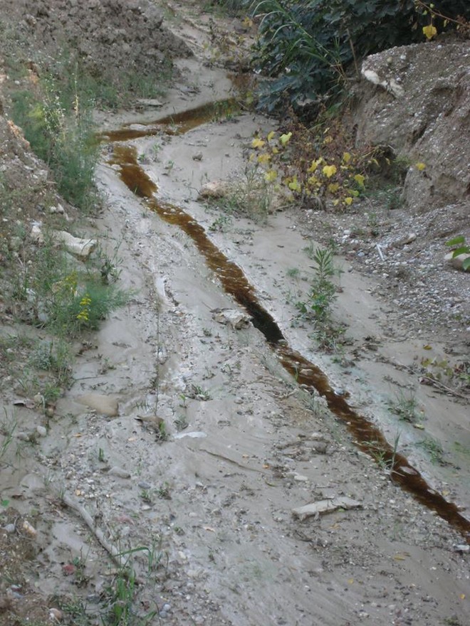 - Στον χώρο κατάντη του κυττάρου, στην περιοχή των δεξαμενών οι εδαφικοί σχηματισμοί παρατηρήθηκαν έντονα διαποστισμένοι, πιθανά με στραγγίσματα απορριμμάτων. Το πρόβλημα αυτό ενδέχεται να λαμβάνει χώρα σε μεγάλη έκταση, καθώς εκτιμάται ότι συμβαίνει συχνή και εκτεταμένη διάθεση στραγγισμάτων σε μεγάλη εδαφική επιφάνεια, είτε εξαιτίας πιθαμών διαρροών στραγγισμάτων, είτε εξαιτίας τις υπερχείλισης των δεξαμενών, είτε εξαιτίας αδυναμίας των συστημάτων συλλογής των όμβριων απορροών είτε λόγω των προηγούμενων παραγόντων και άλλων τις που δεν δύναται να καθοριστούν με την απλή αναγνώριση στον χώρο. Η υπεδάφια αυτή διάθεση, εκτός των κινδύνων για την δημόσια υγεία, εγκυμονεί κινδύνους και για τις τις τις κατασκευές αλλά και για την μειωμένη πλέον ευστάθεια των εδαφικών σχηματισμών των δεξαμενών. Είναι βέβαιο ότι αυτό θα οδηγήσει σε αυξημένες εδαφικές παραμορφώσεις που πιθανά θα βλάψουν τα τεχνικά έργα (με την δημιουργία αυξημένων καθιζήσεων, ρωγμών κλπ).