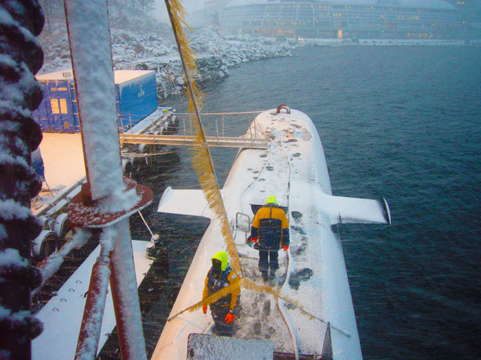 Μέσα σε χιονοθύελλα με 8-9 Μποφώρ, το υποβρύχιο είχε υποδειγματική επιχειρησιακή λειτουργία, γεγονός που έχει χαροποιήσει τόσο το πλήρωμα (41 άτομα με διοικητή τον αντιιπλοίαρχο Κωνσταντίνο Κοντογιαννάκο) όσο και την ηγεσία του ΓΕΝ.