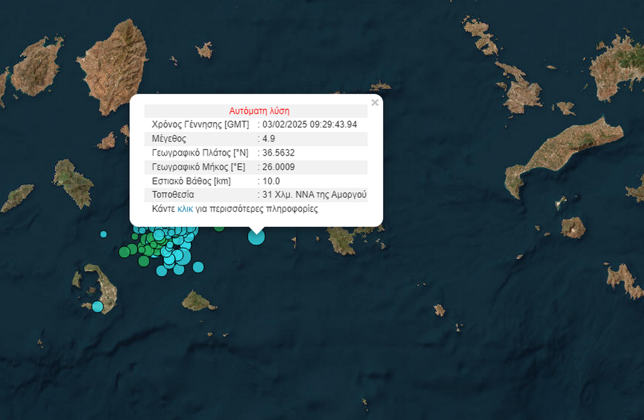 Συνεχίζεται η σεισμική δραστηριότητα στην περιοχή των Κυκλάδων. Πληθώρα σεισμών με τον μεγαλύτερο να φτάνει τα 4,9 Ρίχτερ