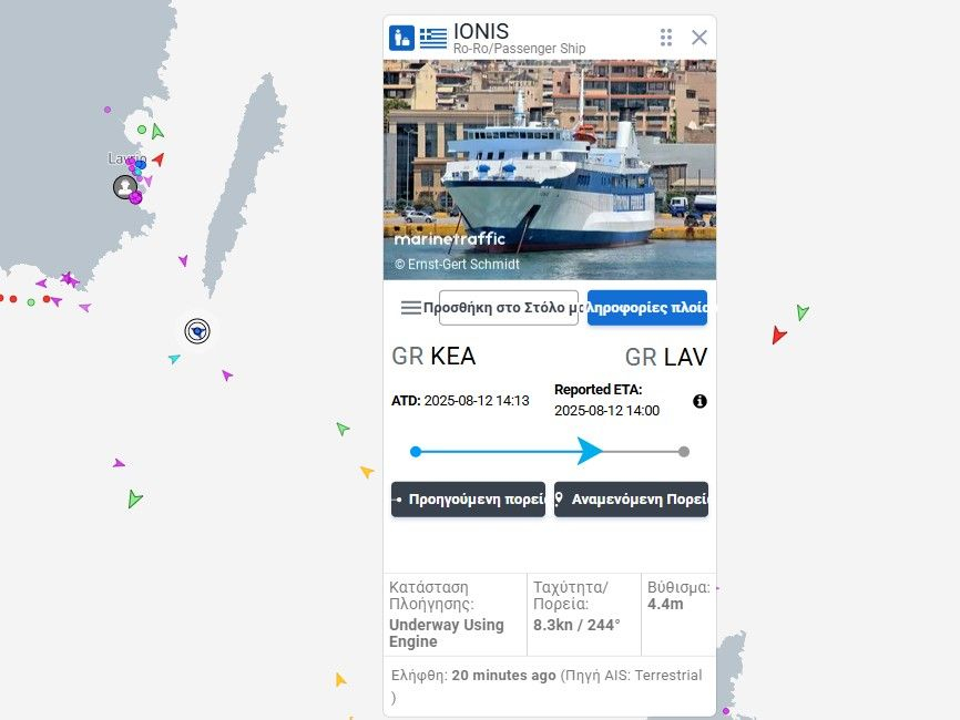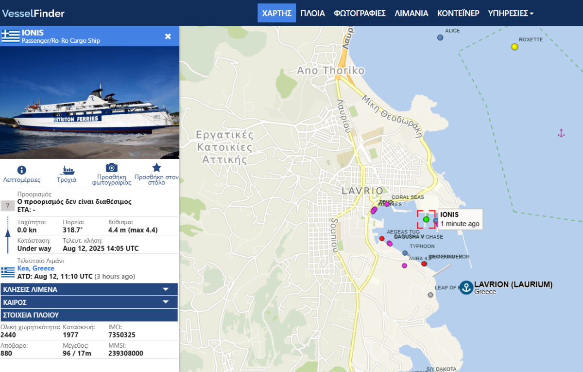 Όπως φαίνεται στον live χάρτη παρακολούθησης πλοίων, το πλοίο βρίσκεται αυτή τη στιγμή στο λιμάνι του Λαυρίου, όπου έδεσε ασφαλώς με τη συνδρομή ρυμουλκού και ξεκινάει η διαδικασία κατάπλου με την αρωγή του ρυμουλκού.