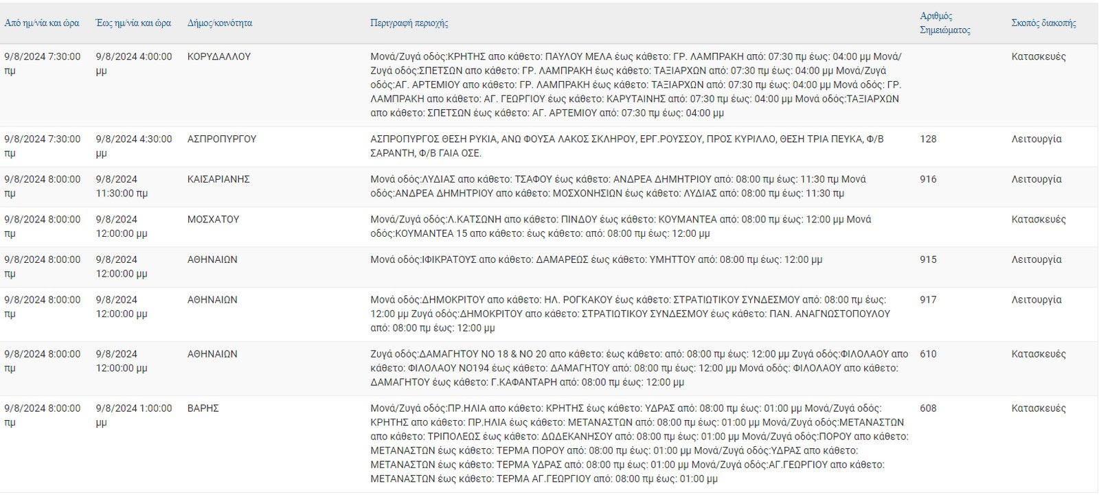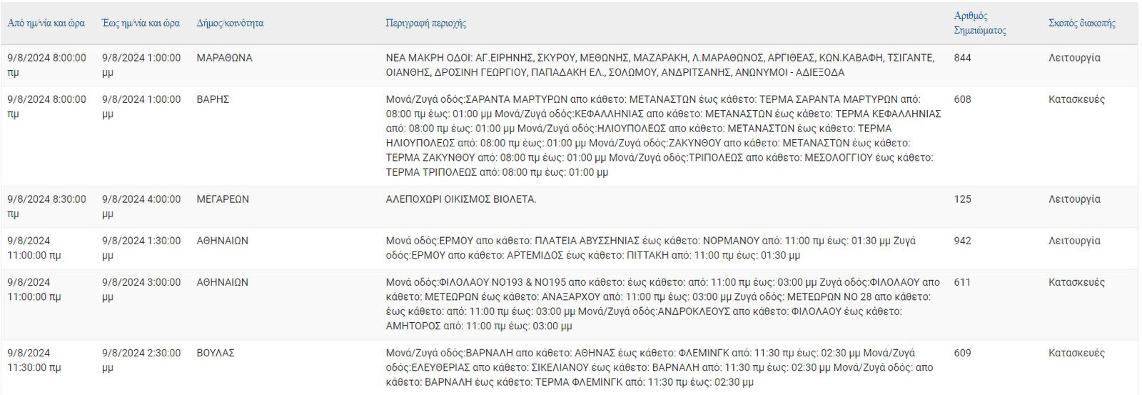 Συγκεκριμένα, χωρίς ηλεκτροδότηση θα μείνουν περιοχές των δήμων: Κορυδαλλού, Ασπρόπυργου, Καισαριανής, Μοσχάτου, Αθηναίων, Βάρης, Μαραθώνα, Μεγαρέων, Βούλας.