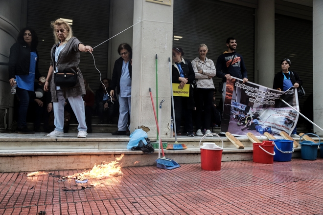 Διαμαρτυρία από τις καθαρίστριες του Δρομοκαΐτειου έξω από το υπ. Υγείας